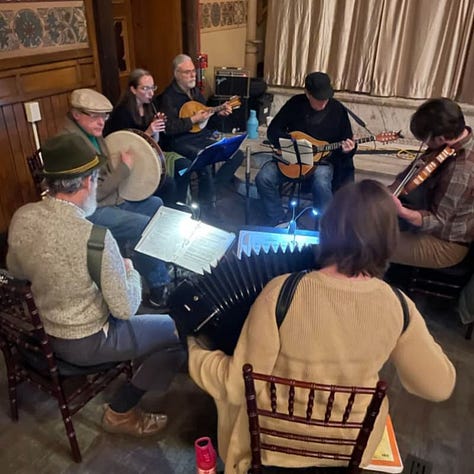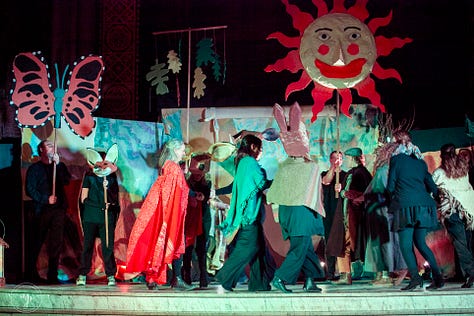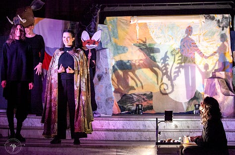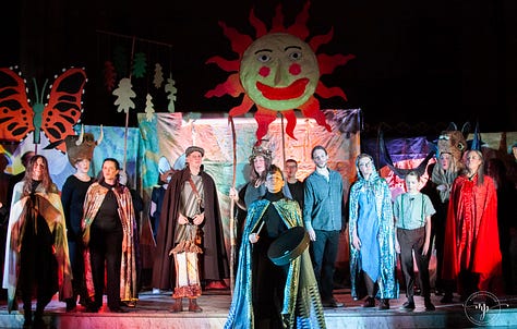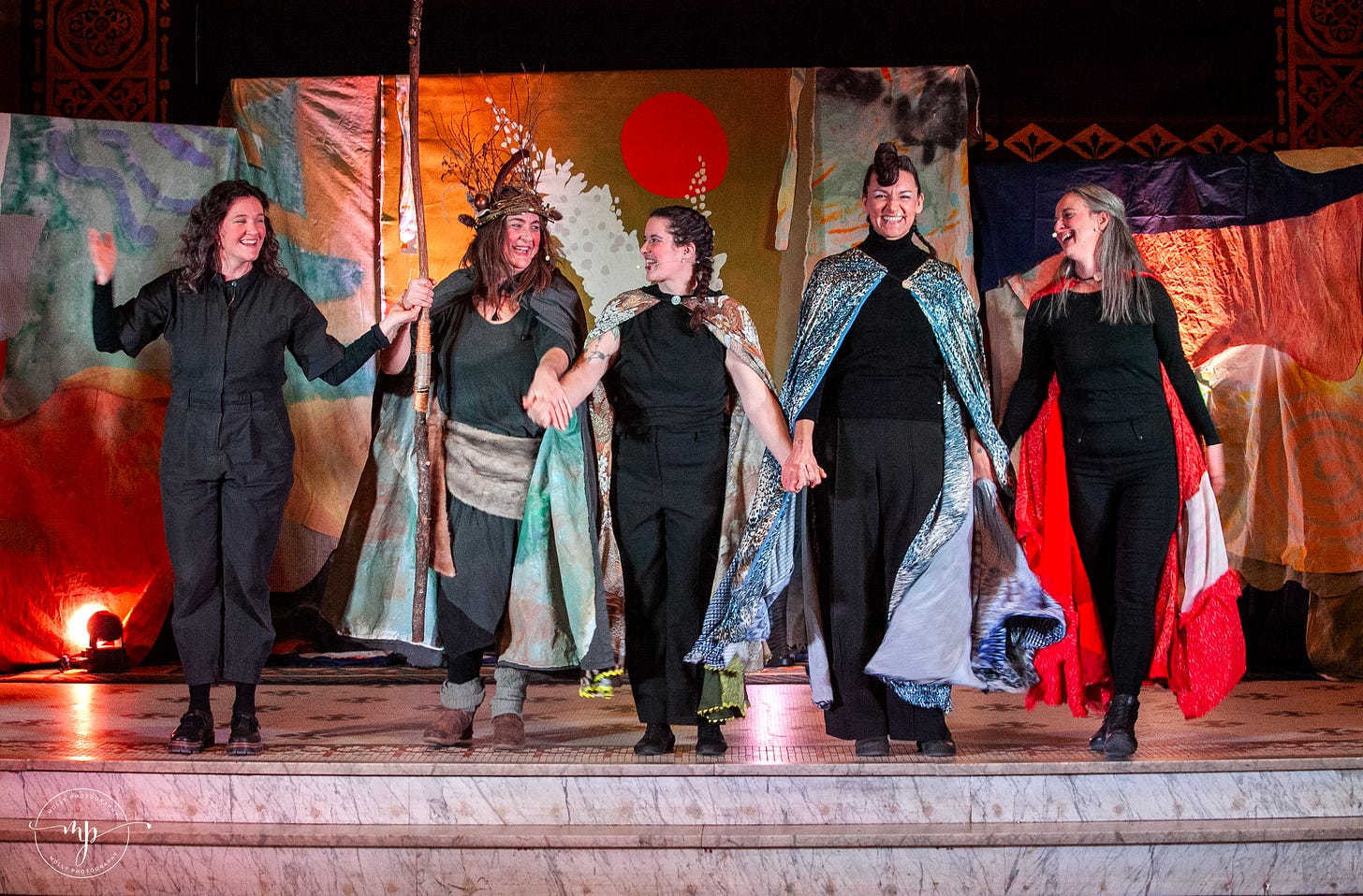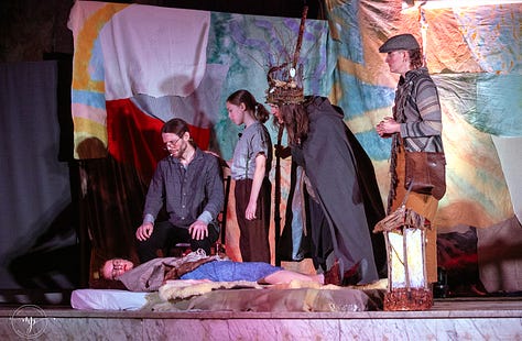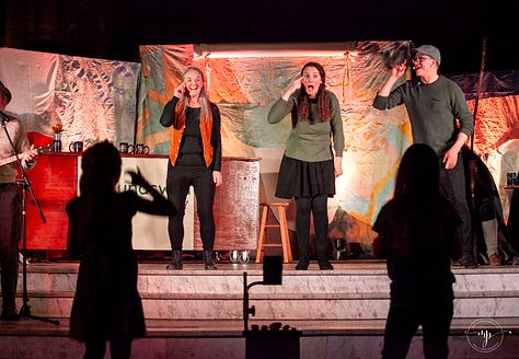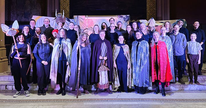 The script, written by Allyson, was rooted in Celtic folklore and touched on profound themes of creation, wholeness, healing and myth.1 (No joke, there were tears in the house!) Key moments in the plot were framed by songs composed and led by the phenomenal Lindsey Scott (find her music on Spotify, online Lyndsey Scott.earth, or @lila.gaia). And then there was the Fog in a Bog Irish Session Band accompanying the dance and audience participation scenes. The whole thing was visually and musically gripping.